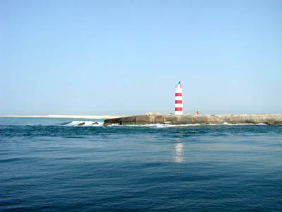 Wieder in Faro/Olhao - Einfahrt in die Lagune (Hintergrund die Km-langen Sandstrände)